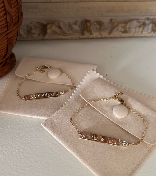 Engraved Bar Bracelet with CZ Accent | Personalized Bar Bracelet