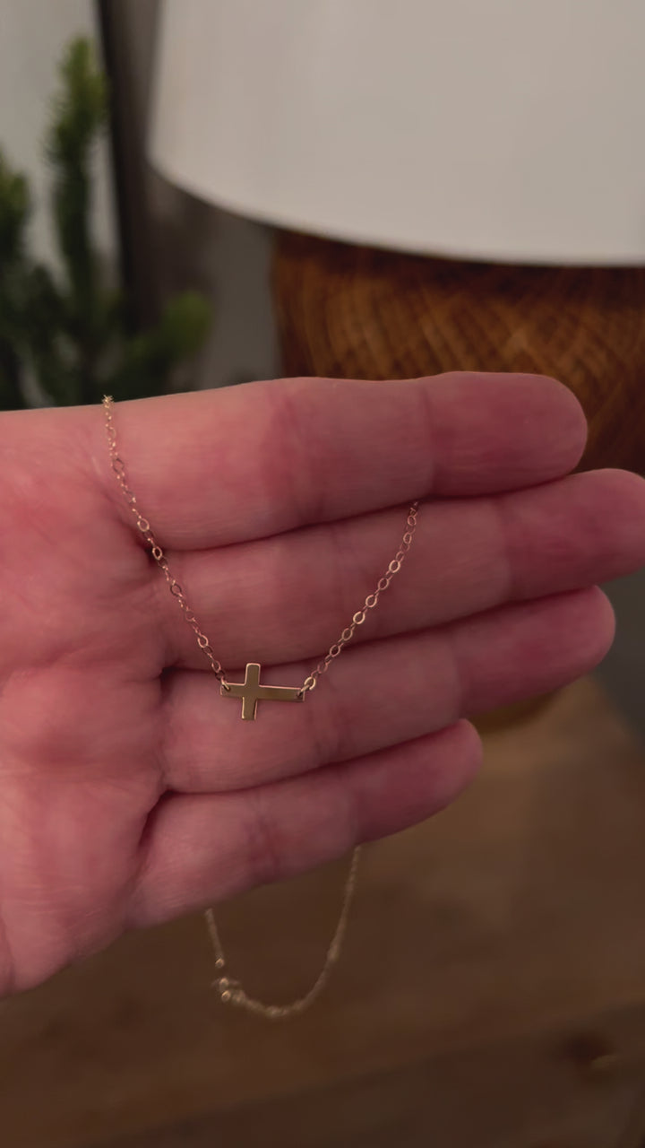 14K Mini Sideways Cross Necklace | Solid Yellow Gold