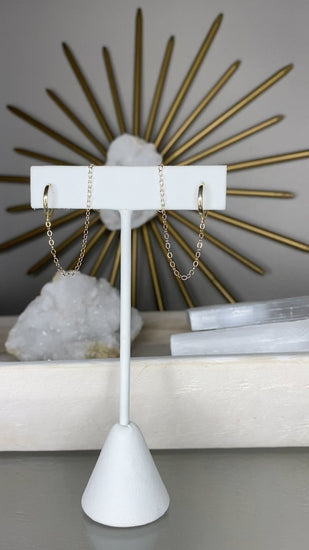 14K Solid Gold Mini Huggie Hoop with Chain | Connector Earring for Ear Stack