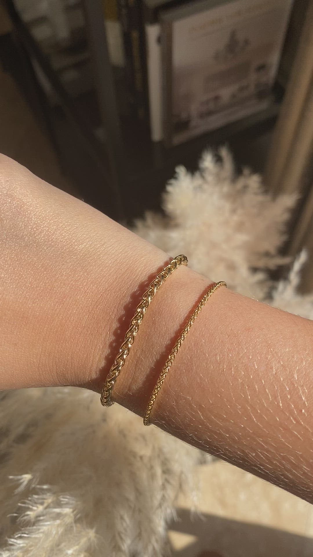 This chunky woven bracelet makes a bold yet refined statement with its textured thick wheat-chain design. The sculpted links catch the light beautifully, giving it that luxurious, high-polish finish you can wear every day.