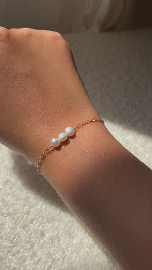 Freshwater Pearl Trio Bracelet | Dainty Gold Filled Figuero Chain Bracelet