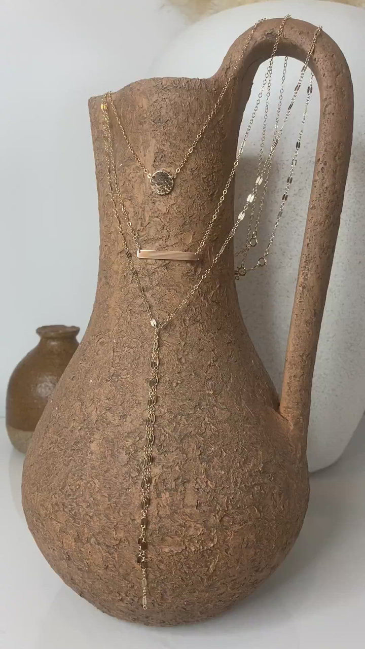 Set of 3 Layering Necklaces - Hammered Disc, Modern Engraved Bar and Long Y Textured Lariat Necklace
