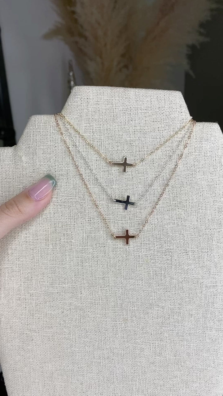 Tiny Sideways Cross Necklace | 3 Metal Finishes